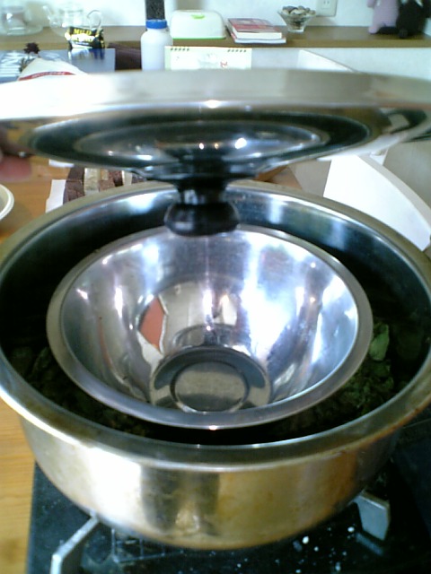 ★湯気が冷えて、ボウルに蒸留水がたまります