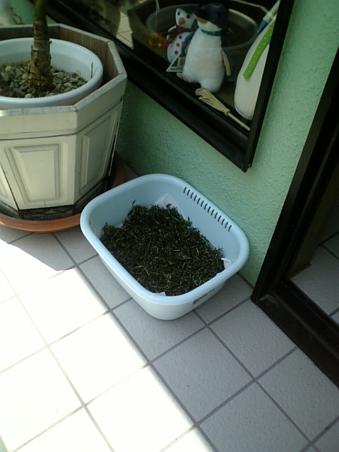去年は枝のままくくって天井からぶら下げてたのですが、乾燥してくるとパラパラ落ちてくるので、今年は最初から葉っぱだけを乾燥させることに。掃除が面倒なもんで