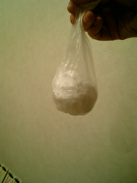 ④ 袋の中でおむすびをつくる要領でこねていきます