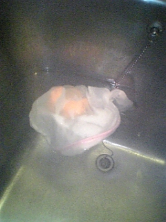 後ですくって処理しないといけないので、洗濯ネットにいれてお風呂にドボン