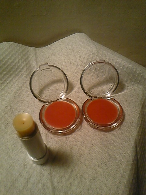 これから寒くなると油分は硬くなるので、少し軟らかめに伸びがよくなるように・・・と思って作りました。実は、ひまし油を入れたカラーリップをスティック容器に入れたら、流れ出てしまいました。軟らかすぎたようです(失敗)