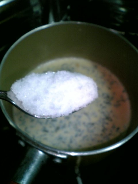 再び中火にし、ひと煮たちしたら、火を弱め砂糖を思ったより多めにいれる