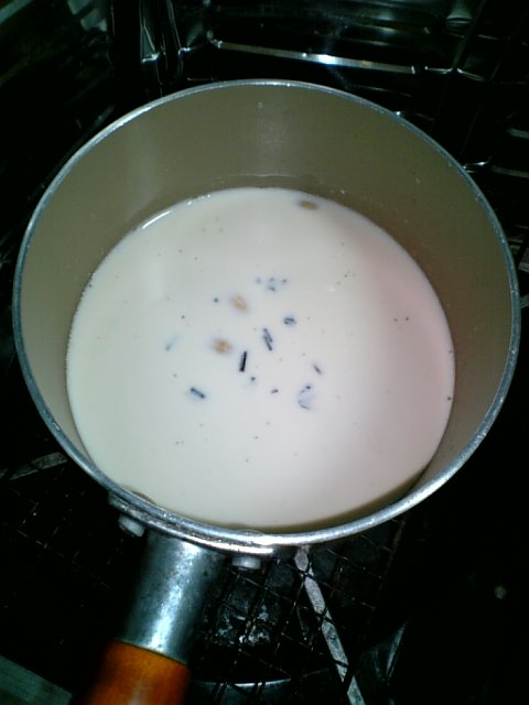 しばらく(1~2分)後、火を一旦止めて牛乳(出来上がりの半量)を加えたところ