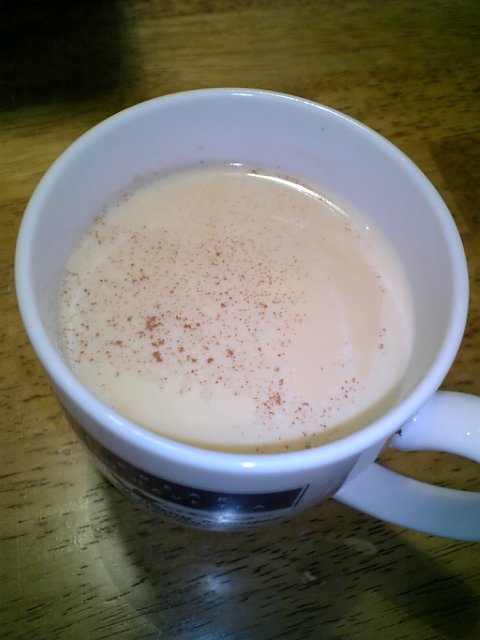沸騰直前に火からおろし、シナモンパウダーを振って、できたぁ!
