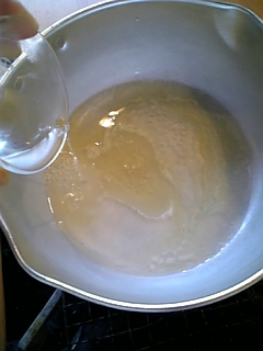 まだ、水分と油分が分離しているので、再度加熱・・・