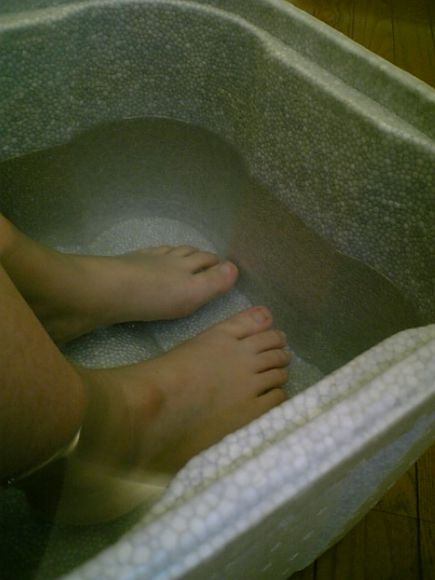 ちょっと早めにおきだし、フットバス&角質とり。
