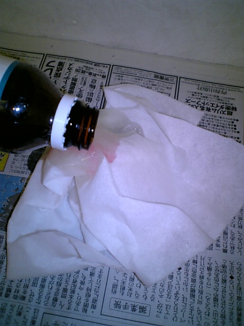 かじぇはよくクラフト作るときにキッチンペーパーの『リードって便利だな♪』を使っているので、そんな吸油性の高い紙(新聞紙なども◎)を丸めて、そこに吸わせます。このとき、新聞紙の上でするとラクです。べたべたしないように下に敷いた新聞紙などでもう一度包めば、普通に可燃ごみとして出すことができます